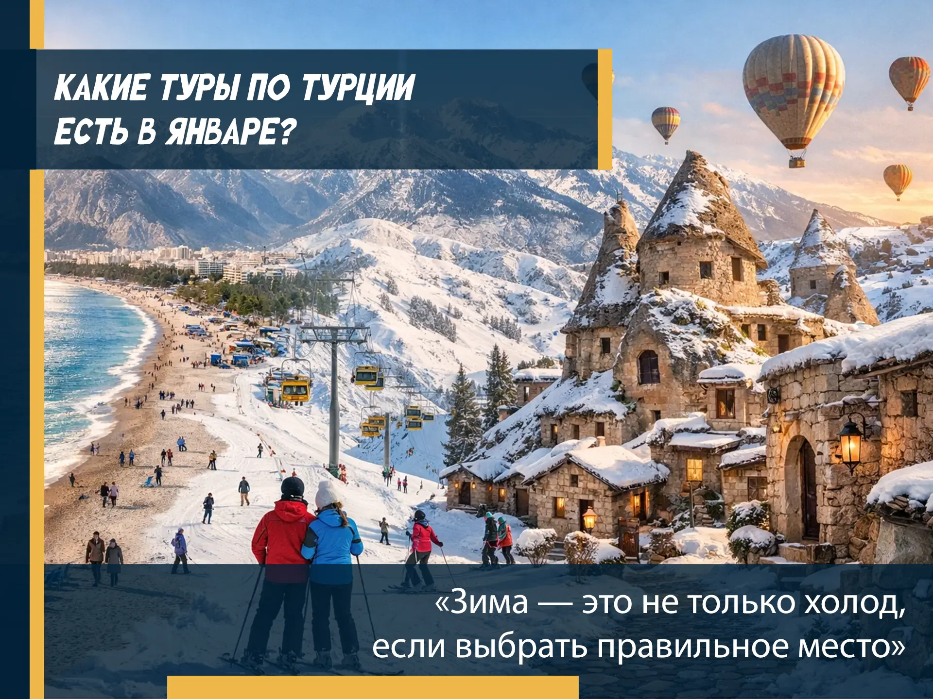 Январь в Турции — отличное время для разнообразного отдыха, потому что страна предлагает не только море: здесь каждый найдёт свой формат.