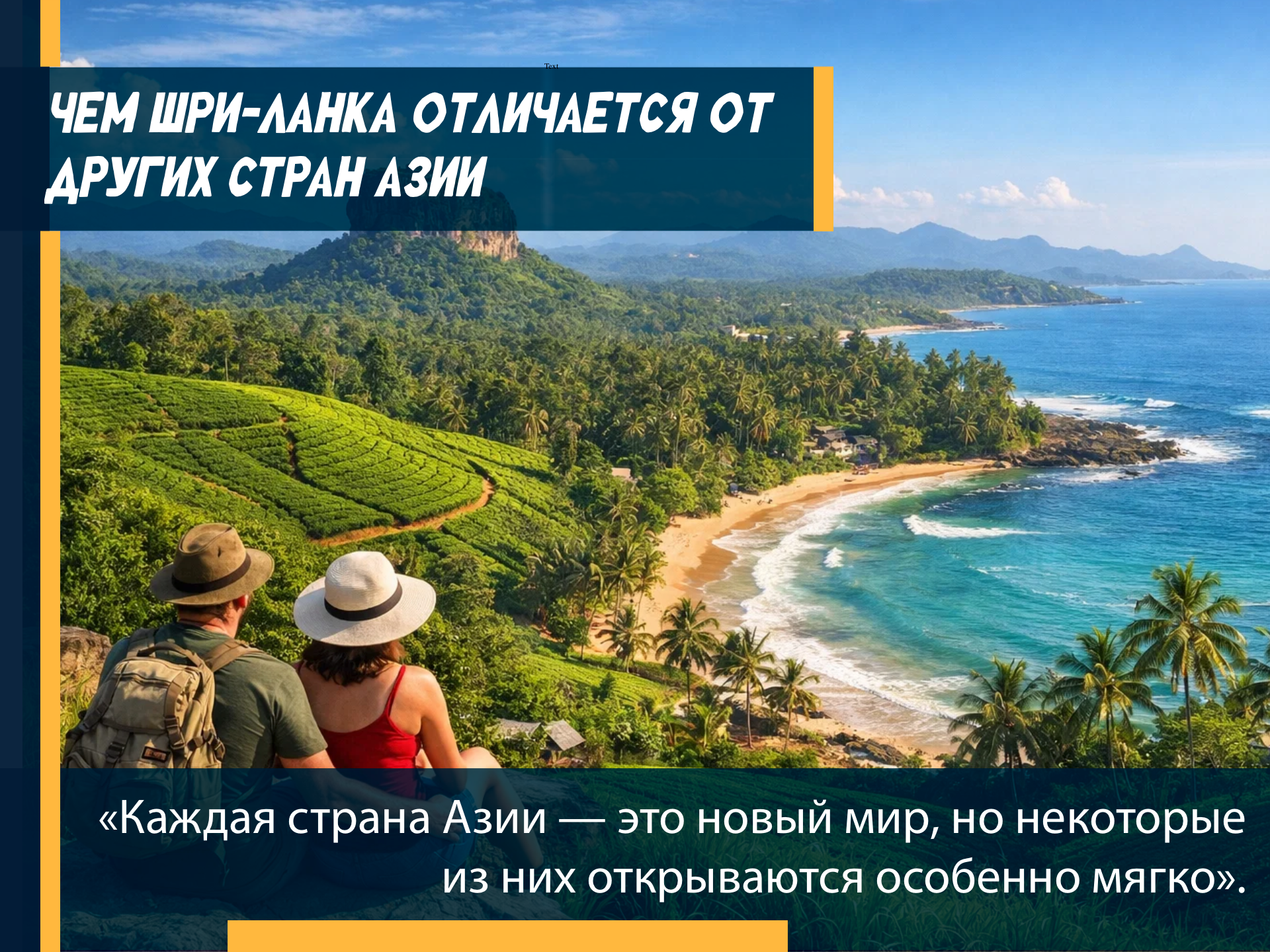 ✅ Шри-Ланка часто называют самой «сбалансированной» страной Азии для путешествий. Здесь на небольшом острове сочетаются океан, горы, джунгли и древняя культура.