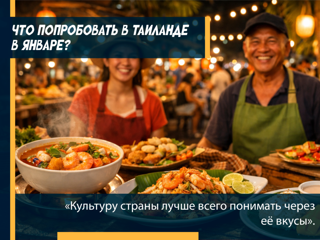 «Культуру страны лучше всего понимать через её вкусы». — восточная мудрость ✅ Январь в Таиланде — сухой сезон и идеальное время, чтобы познакомиться с местной кухней без спешки и жары.✅ Обязательно попробуйте том ям — ароматный суп с креветками, лаймом и чили. В январе морепродукты особенно свежие.✅ Пад тай в уличных кафе раскрывается по-новому: хрустящая […]